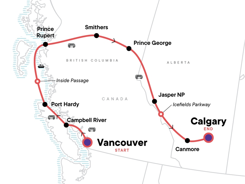 10 night tour begins Vancouver ends Calgary: