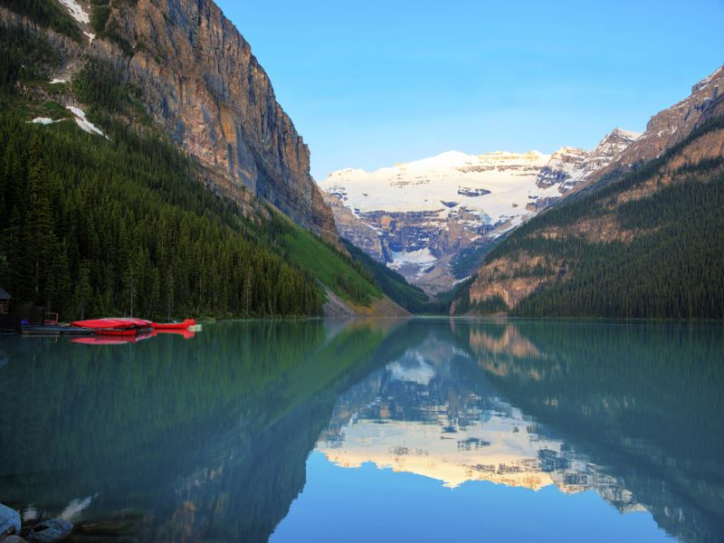 Just 45 minutes from Banff lies Lake Louise, one of the world’s most photographed lakes. Its turquoise waters, framed by snow-capped peaks and the Victoria Glacier, seem almost unreal. Stay at the iconic Fairmont Chateau Lake Louise (in a lakeview room naturally), where you can watch dawn break over the water from your window. Take a gentle walk along the lake’s edge, or for a more adventurous outing, hike up to Lake Agnes Tea House, perched high above with stunning views below. In summer, the wildflowers are glorious; in autumn, golden larches glow against the mountain slopes.