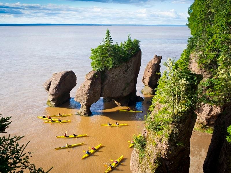 “From here, continue north to the harbour town of Digby and take the scenic ferry across the Bay of Fundy to Saint John, New Brunswick. The crossing offers a chance to spot seabirds and perhaps even whales in the nutrient-rich waters of the bay, home to the world’s highest tides. From Saint John, drive the stunning Fundy Trail Parkway - a ribbon of road hugging the rugged coastline, with sweeping viewpoints, secluded beaches, and forested footpaths leading to waterfalls and sea cliffs. Continue to the famous Hopewell Rocks, where the tides carve towering flowerpot-shaped formations from the red sandstone. Walk along the ocean floor at low tide, then return at high tide to see the same rocks almost submerged - a mesmerising display of nature’s power.”